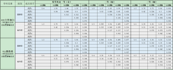 学科竞赛 | 级别 | 特等奖及 一等(金) | 二等 (银) | 三等 (铜) | |