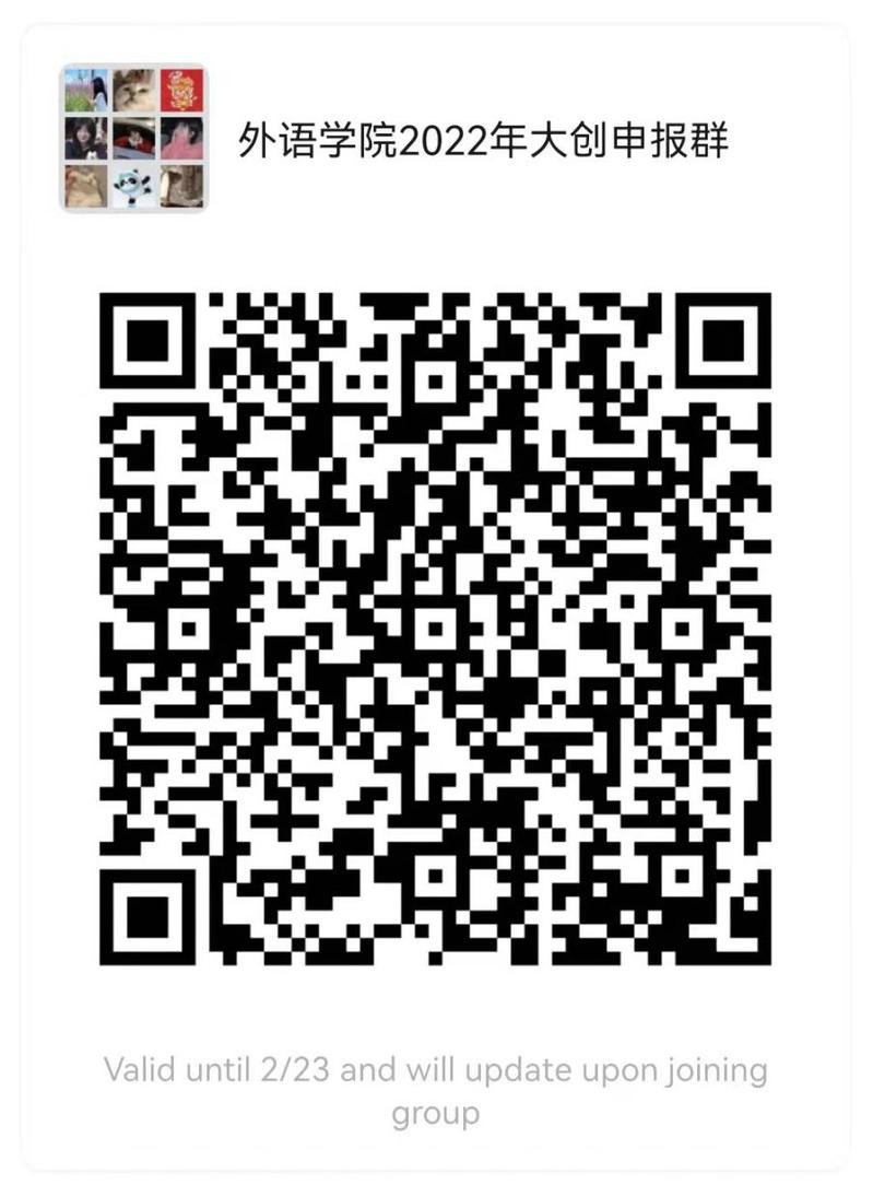 5 其他要求:为方便大家准备材料和后续提交的材料避免少出问题,请所有有意向进行项目申报的团队加入到2022年大创项目预申报群(扫码下方图片添加),后续会在此群就项目申报中遇到的问题进行及时沟通解决,内容涉及申报书内容、撰写格式要求、经费预算等,请所有预申报的项目团队负责人及时加群,项目团队成员也加入。
