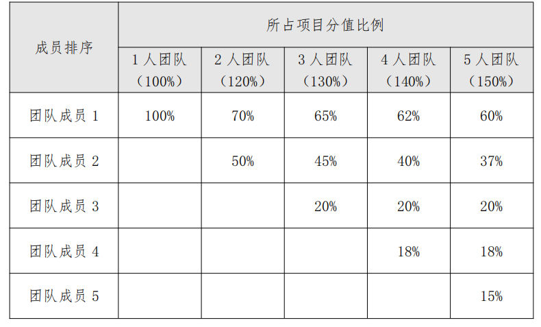 (11)以上为团队项目加分,按照以下比例计算,只计算前5名