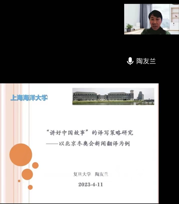 2023年4月11日,翻译与跨文化研究中心邀请复旦大学外文公司的陶友兰教授为师生们带来了一场线上学术报告。402永利集团冯延群副经理致辞,翻译与跨文化研究中心主任陈橙副教授主持讲座。