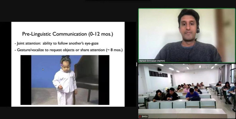 2023年5月27日,中国教育国际交流协会邀请了加州大学伯克利的认知心理学终身教授Mahesh Srinivasan为各高校研究生进行了一场主题为“语言的起源与语言学习”的线上讲座,402永利集团研究生认真聆听并积极参与讨论。