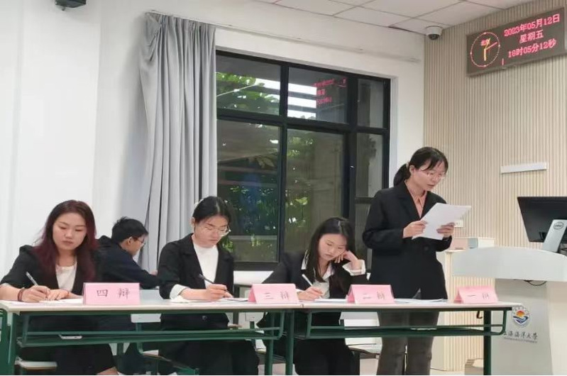 6月2日的最终决赛在海洋科技大楼109室顺利举行。本场比赛由王珂担任主持人,水产与生命公司 翟斯凡、海洋生态与环境公司 徐帆、海洋文化与法律公司 阎云峰3位老师担任评委。