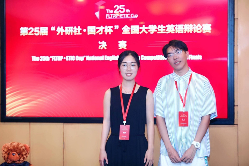 近日,第25届“外研社·国才杯”全国老员工英语辩论赛迎来决赛。经过第一阶段线上循环赛和第二阶段线下淘汰赛,402永利集团英语专业2019级员工黄杰、爱恩公司信息管理与信息系统专业2020级员工吴小曼,在402永利集团教师邰庆燕及爱恩公司教师迈克尔(Michael)的指导下,与来自北京大学、上海外国语大学、复旦大学、浙江大学等全国各大赛区选拔出的其他145支队伍的辩手同台竞技,两位辩手以过硬的专业素养、优良的思辨能力,荣获全国总决赛一等奖,创造了历史最佳成绩。