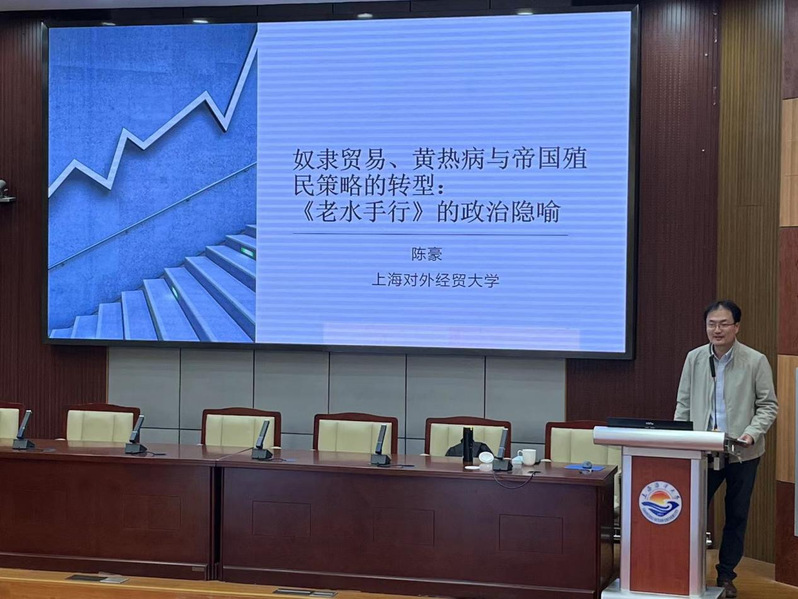 2023年11月14日下午,上海对外经贸大学英语系主任,上海市外国文学学会理事,陈豪副教授应邀为公司师生作题为“《老水手行》中的奴隶贸易与疾病隐喻一一兼谈研究论文的写作方法”的专题讲座。讲座由402永利集团外国语言文学学位点负责人朱骅教授主持,希望通过这次讲座,让公司师生了解新时代背景下的新文科建设,掌握跨学科背景下的研究方法与论文写作技能,从而成为具有批判精神、创新意识、高度社会责任感、跨学科知识和国际化视野的高素质人才。