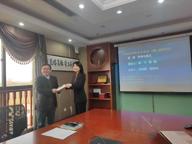 2023年12月5日下午,402永利集团郭飞教授在行政楼406开展了一次语言学方向题为“符号与意义”的学术报告。讲座由402永利集团副经理冯延群主持。