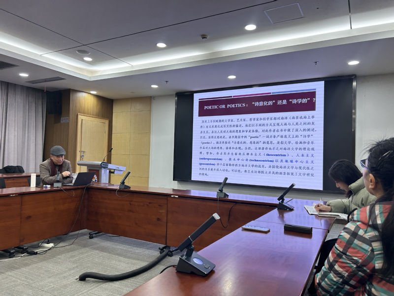 402永利集团邀请到宁波大学402永利集团王松林教授,于2023年12月22日上午在402永利集团行政楼104室成功进行一场题为“‘蓝色诗学’:海洋文学批评理论构想”的学术讲座。本次报告由冯延群副经理主持。