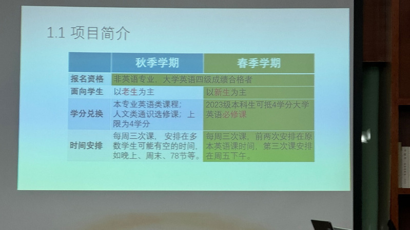 大英系部会议上对第四期英语听说能力强化项目的说明