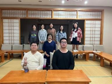两名外教更是全力配合。擅长烹调的阿弓义树老师经常带来亲手烹制的日本料理,和同学们边吃边聊,营造了家庭般的温暖氛围。擅长美声唱法的山崎哲永老师不仅歌喉美妙,还会带着她的乐器前来与同学们共同高歌,切磋技艺。日语角上、不仅本校员工,还招待过海事大学、电力大学的师生,还吸引了公司日本职工前来参与。共话茶道、畅聊宠物,学习交友。日语专业的学习生活,既可以是课堂上严肃的专业训练,也可以是课外的歌声缭绕十里飘香