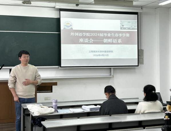 上午举行朝鲜语专业毕业生座谈会,朝鲜语系李海英老师主持发言,李老师回顾了同学们在校期间的学习生活,并对大家的努力和成果给予了高度肯定。接着,毕业生们依次上台,用一分钟时间简要介绍了自己毕业论文的进展情况、毕业去向以及签约情况。随后,辅导员徐基衡老师表达了对同学们的不舍之情,并对毕业生们寄予厚望。最后,齐佩经理和刘海为书记从个人发展、专业发展、国家发展三个层面作了总结发言,他们期待朝鲜语系的毕业生们能够在未来的道路上继续发光发热,为系部增光。