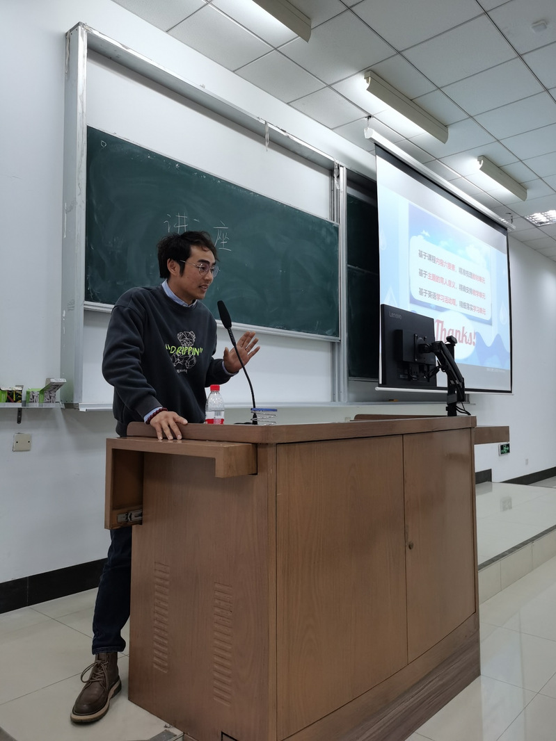 2024年4月9日晚,英语系在1101举办了“教学技能实践”课程讲座暨就业推进讲座。