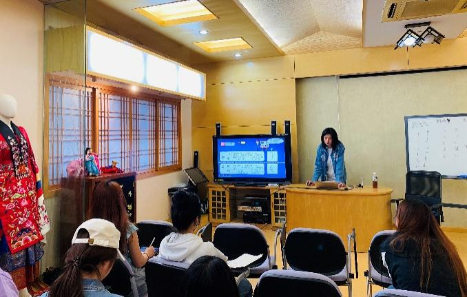 第一节(4月29日):内容涉及进行简单的kpop quiz活动,暖场过后正式进入韩语的初步入门。承担本次任务的主要是我系韩IN社团的骨干成员,首先从韩语和中文发音相似的单词导入,向大家介绍了世宗大王及创制“训民正音”的原因和原理,带大家了解了四十音及韩语单词的书写和发音顺序,潘嶙悠同学介绍了韩语键盘并推荐了更佳的翻译软件,使大家对韩语形成初步的理解。另外,专业同学分发了提前为大家制作的韩语名卡,并一对一地指导纠正韩语名字的发音。最后针对问候与告别、感谢与道歉、家庭成员称呼和自我介绍四大日常用语板块进行了教学。