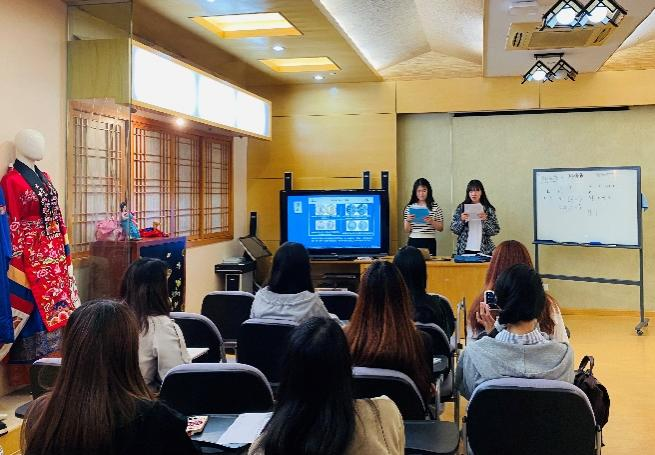 第二节(5月7日):元音ㅏㅓㅗㅜㅣ 辅音ㅇㄱㄴㄷㄹ的教与学。对其发音、书写进行了教学并补充了相关词语,同时邀请到了公司韩国交换生孙知我和赵俸助同学对韩国饮食文化进行介绍,不仅涉及到了现在大热的美食韩式烤肉、拉面等,还介绍了传统蜜饯、米酒等,另外,介绍了一些在韩国餐厅用餐时需要注意的礼节和炒饭文化,使同学们对韩国美食兴趣大增。