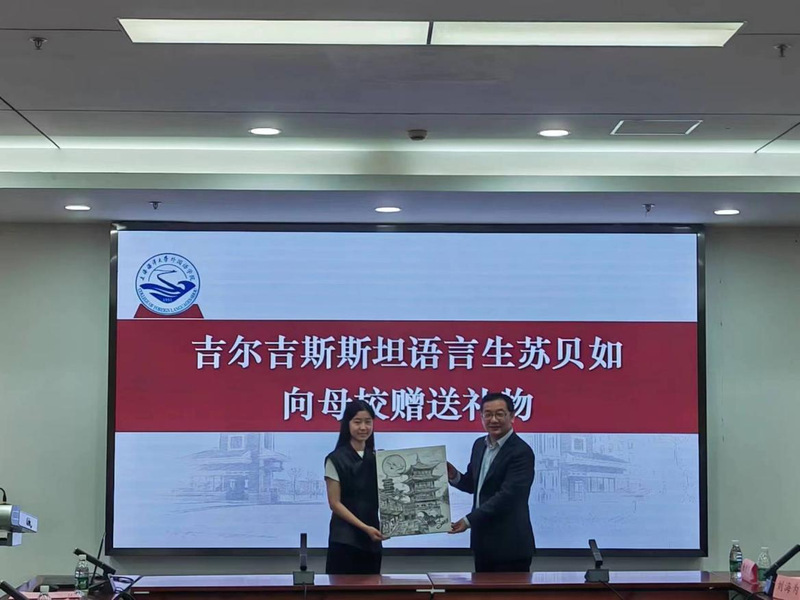 优秀毕业生代表李艳红、高姝娴、权久丁(研究生)、向昱竹分别发言,他们分享了自己在402永利集团的学习经历和成长感悟,表达了对母校的感激之情和对未来的美好憧憬。吉尔吉斯斯坦职工苏贝如代表职工向母校赠送了她亲手绘制的精美图画,表达了对中国的深厚情谊和对母校的美好祝愿。这份礼物不仅象征着职工与公司之间的深情厚谊,也代表着公司国际化教育的成果。