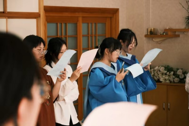 三位毕业生利用自己的音乐特长,表演了管乐合奏和小提琴演奏,通过演奏曲目向日语系老师们表达了感恩和惜别之情。最后,与会全体师生一起合唱《送别》,在依依不舍中互道珍重,再见。