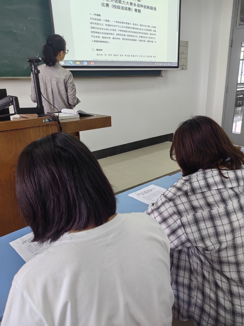 朝鲜语系关注赛事,积极响应国家需求,紧跟时代步伐,积极筹备校赛,紧锣密鼓地进行宣传动员、组织报名、设计形式、讨论赛题、确定内容、组织比赛,9月27日圆满完成大赛的第一赛制——校赛(初赛)。校赛设置金、银、铜奖,获奖比例分别为本校参赛选手人数的5%、15%、25%。各校晋级省赛的名额由各省赛组委会分配。