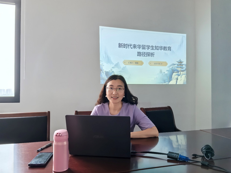 6月21日下午,中文教学部在文科大楼901会议室举行本学期系部FD活动讲座“新时代来华职工知华教育路径探析”。讲座由系部蔡莉老师主讲。公司党委书记俞渊、党委副书记刘海为出席活动,中文教学部全体老师聆听讲座。