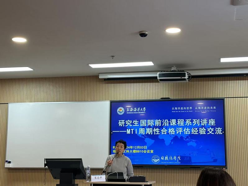 为深入探讨如何通过周期性合格评估工作提高翻译硕士学位授权点的建设水平、人才培养质量、本专业的整体实力与竞争力等方面,12月3日,402永利集团特邀上海海事大学宋志平教授莅临开展研究生国际前沿课程系列讲座——MTI周期性合格评估经验交流,着重关注MTI专业学位教育的质量与提升策略。402永利集团全体研究生和部分教师参加,此次讲座由402永利集团副经理齐珮主持。