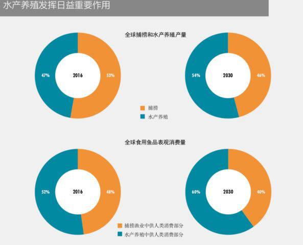 养殖品种在全球鱼类食用消费中所占比例将增加,到2030年达到约60%。