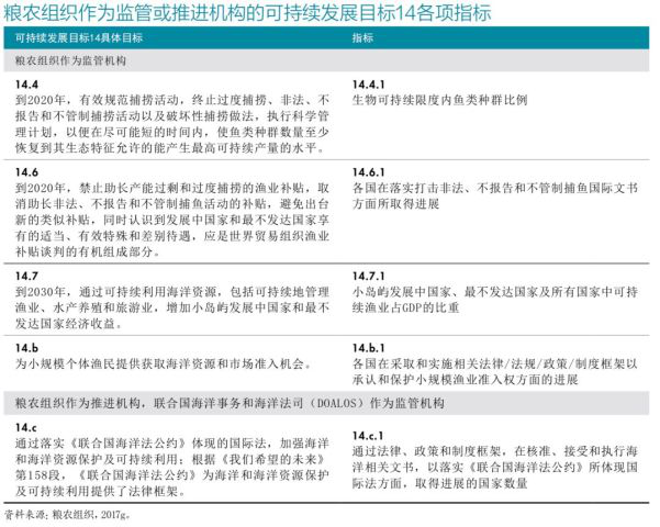 在粮农组织监管下可持续发展目标14各项指标制定及应用最新情况,具体目标如下: