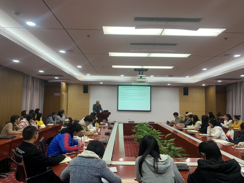 森下教授围绕着海洋管理做了系统的回顾、总结和展望。他首先介绍了国内渔业管理中经常采用的资源评估、法律制定等举措,解读了双边渔业管理中重要的入渔制度和争端解决机制,以及多边渔业管理中采用的包括《联合国海洋法公约》在内的重要国际法律框架。就海洋管理中的环境保护问题,森下教授分别介绍了国际法律、国际组织(包括区域性渔业管理组织)、政府所能承担的不同角色,并分析了媒体等对海洋管理政策制订的影响,探讨了科学论证与公众认知之间的矛盾调和。森下教授认为,当今的海洋管理政策正朝着国际化、跨部门、学科综合化、非直线型思维等特色发展。在讲座中,森下教授还介绍了未来海洋管理研究中值得广大年轻学者关注度的课题,比如国家管辖外生物多样性、海洋保护区、海洋酸化等问题。在讲座的最末,森下教授向在座的各位师生提出了可以值得深思的海洋管理难题,能否用传统的经济理论和西方的海洋管理举措解决海洋管理面临的全球问题。