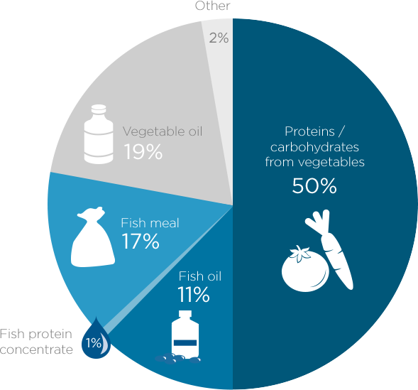 在挪威,鲑鱼饲料的成分受到严格的管控。饲料所用原材料是人类不食用的原材料,比如下脚料和工业用鱼。在过去的30年里,水产养殖使用的饲料总量减少了15-20%,随着农业技术的进步,预计饲料的使用总量还会进一步减少。