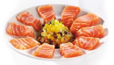 养殖的大西洋鲑鱼占全球鲑鱼市场总量的50%,但随着世界人口的增长,它可能成为所有人的可持续性的蛋白质需求来源。海水养殖鲑鱼的碳足迹比牛肉和猪肉都要低——因此,食用鲑鱼可以改善气候变化。