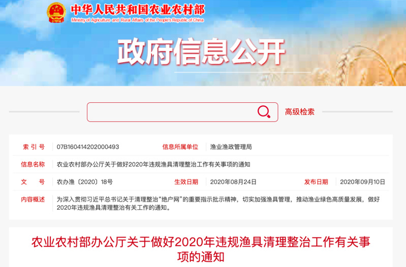 年初,我部印发了《“中国渔政亮剑2020”系列专项执法行动方案》,部署开展清理取缔“绝户网”专项执法行动和渤海综合治理专项执法行动。各地要按照文件要求,加大执法力度,加强部门协作,强化宣传教育,切实做好各项执法活动。