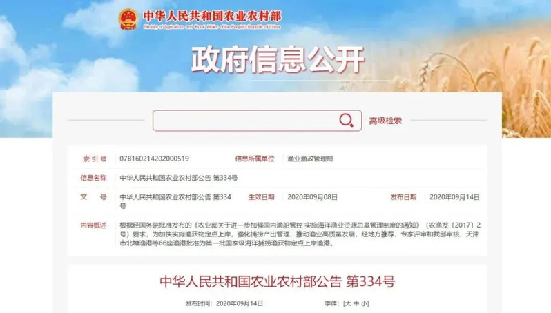 近日,农业农村部发布公告,对外公布第一批国家级海洋捕捞渔获物定点上岸渔港。根据经国务院批准发布的《农业部关于进一步加强国内渔船管控实施海洋渔业资源总量管理制度的通知》(农渔发〔2017〕2号)要求,为加快实施渔获物定点上岸,强化捕捞产出管理,推动渔业高质量发展,经地方推荐、专家评审和农业农村部审核,天津市北塘渔港等66座渔港获批。