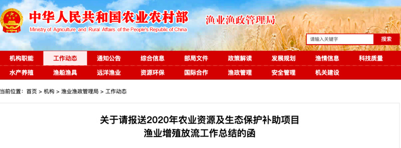 为及时掌握2020年度各地农业资源及生态保护补助项目渔业增殖放流工作完成情况,根据《农业农村部 财政部关于做好2020年农业生产发展等项目实施工作的通知》(农计财发〔2020〕3号)要求,请对2020年本地区农业资源及生态保护补助项目渔业增殖放流工作进行总结分析,具体要求如下。