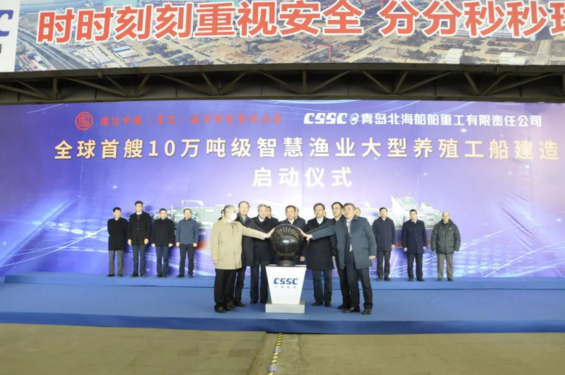 12月19日,全球首艘10万吨级智慧渔业大型养殖工船(“国信1号”)建造启动仪式在青岛西海岸举行。本次养殖工船建造启动仪式是继今年6月3日养殖工船建造签约仪式之后,在青岛市乃至中国深远海工业化渔业养殖领域又一具有里程碑意义的重大事件,它标志着全球首艘10万吨级智慧渔业大型养殖工船项目正式进入全面建造启动阶段。该船将于2021年完成分段施工、合拢、出坞下水并开展设备及系统调试,2022年3月正式交付运营。