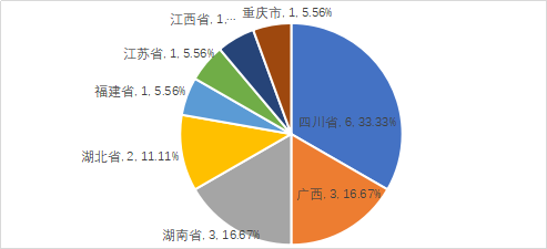 2月份督察督办重点案件18起,目前已收到反馈17起,未到反馈时间1起。从督办案件的省份来看,四川督办数量最多,为6起,其次为广西和湖南,分别为3起。详细情况见图6。