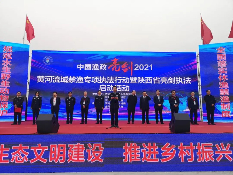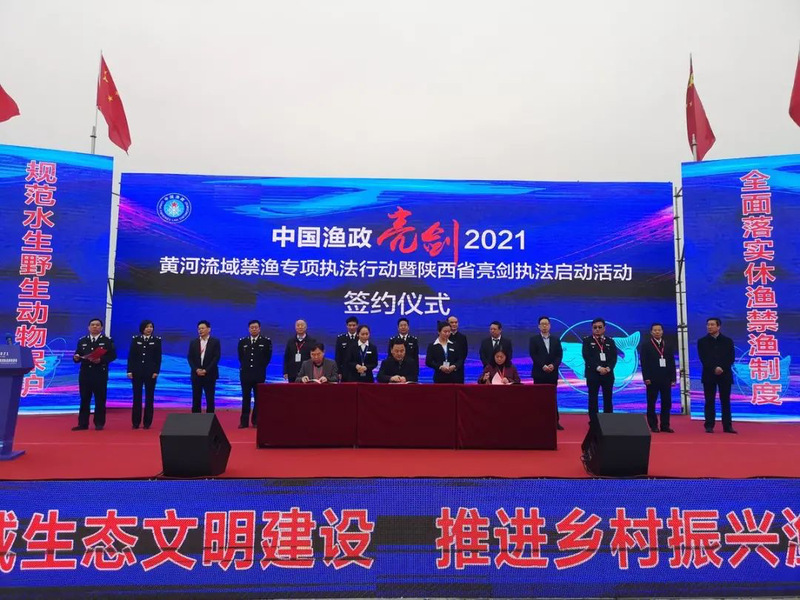 在启动活动上,沿黄9省(区)农业农村部门负责同志签署并宣读了《黄河流域生态保护和渔业高质量发展宣言》,承诺坚持上下游、干支流、左右岸、江河湖库协调行动、系统治理;完善重要水域渔业资源养护制度,严格渔港、渔船、渔具管理;推动产业融合发展,创造更多就业机会,提高渔民收入;严格执法、联动执法、同频共震,以最严格执法守牢生态和发展底线,以法治力量推动黄河流域渔业高质量发展。渭南、运城、三门峡三市签订了禁渔执法合作协议,执法人员、渔民代表作了表态发言。