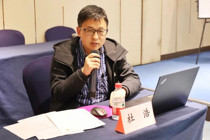 (图:中国水产科学研究经理江水产研究所研究员杜浩作中华鲟、长江鲟野外种群和人工繁育群体情况汇报介绍)