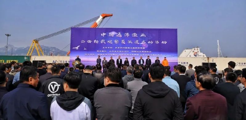 4月10日,中国远洋渔业公海转载观察员派遣启动活动在山东省威海市荣成石岛新港举行。我国首批5名由农业农村部派遣的公海转载观察员正式登临远洋渔业运输船,代表中国政府执行公海转载监督任务。这是我国首次派遣远洋渔业公海转载观察员,体现了我国积极参与国际海洋治理、严厉打击非法捕捞活动的坚定决心和大国担当。