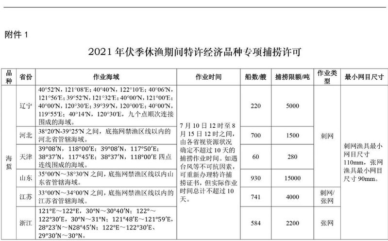 1.2021年伏季休渔期间特许经济品种专项捕捞许可