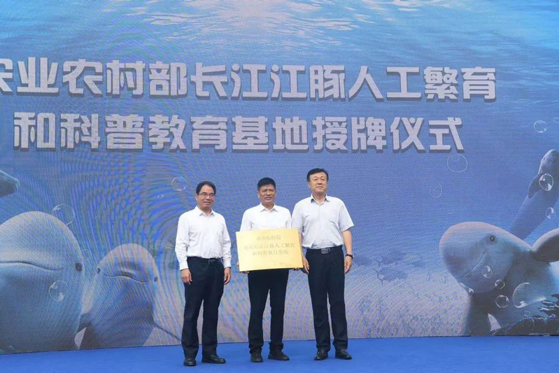 (图:授予珠海长隆海洋王国、上海海昌海洋公园为农业农村部长江江豚人工繁育和科普教育基地)
