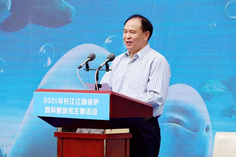(图:农业农村部长江流域渔政监督管理办公室主任马毅介绍长江江豚保护工作进展)