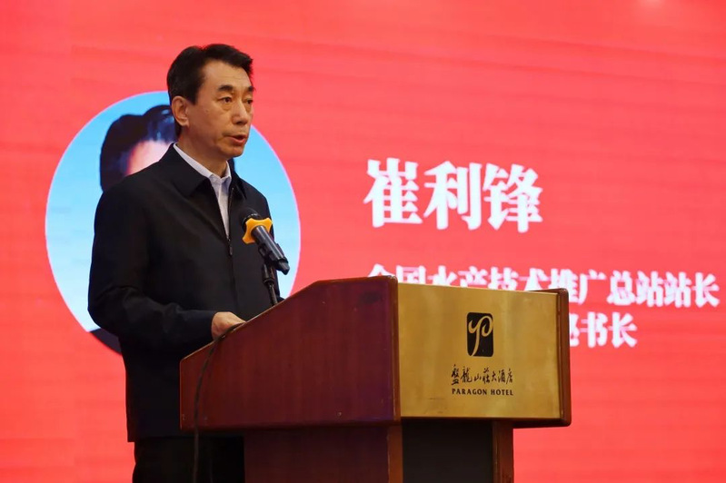 (图:全国水产技术推广总站站长、中国水产学会秘书长崔利锋致辞)