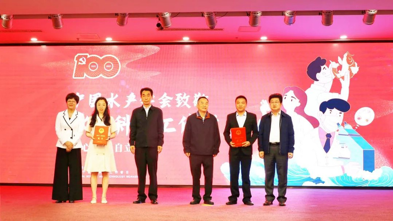 (图:为第二届“最美渔技员”获奖代表颁发证书)