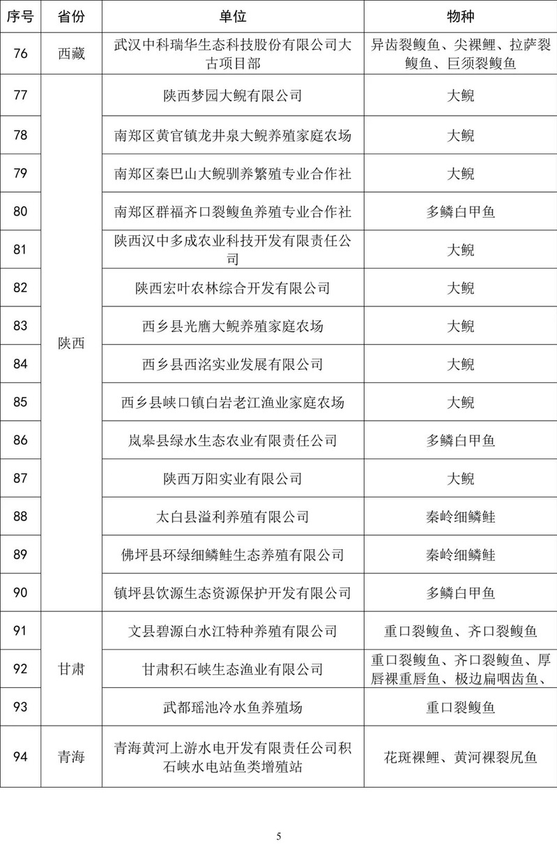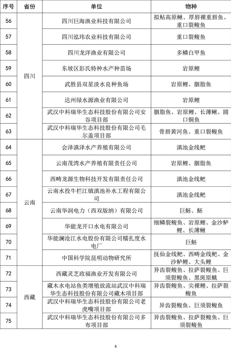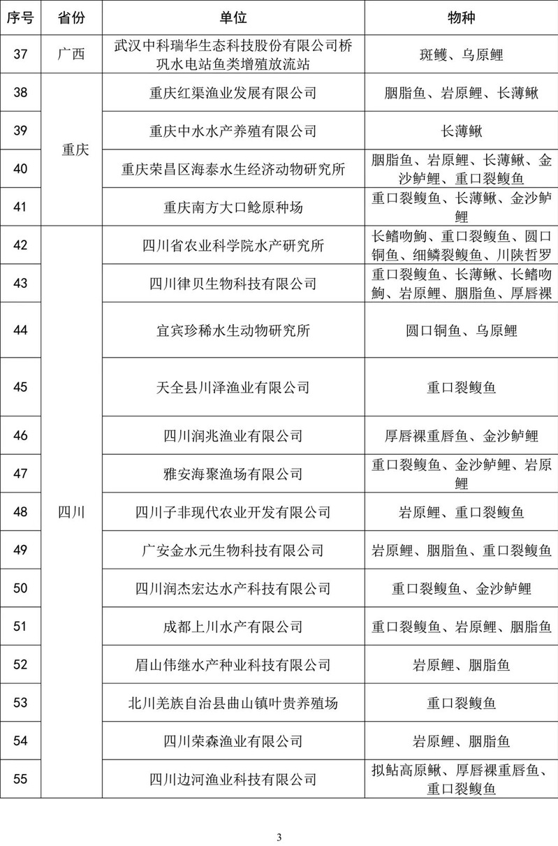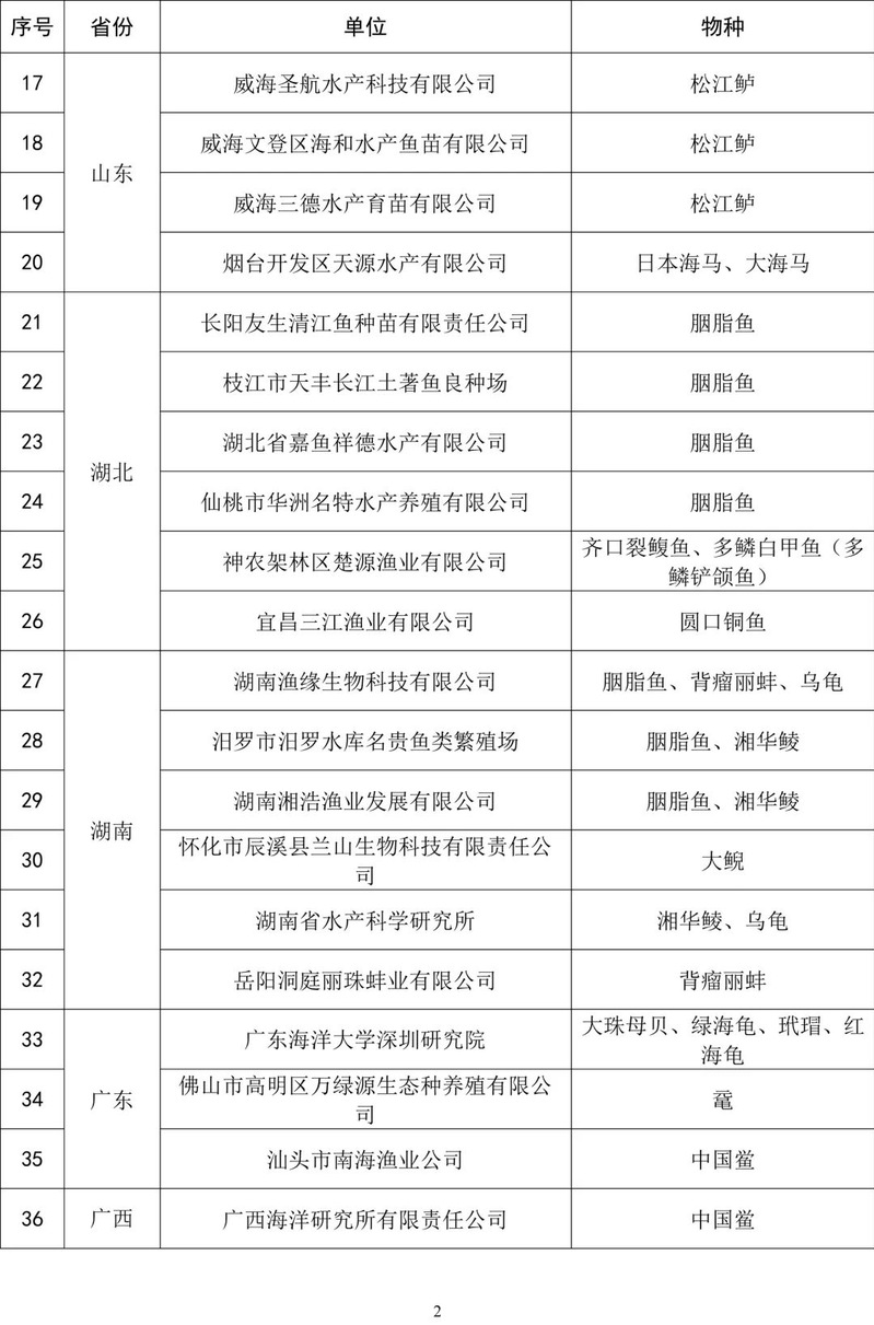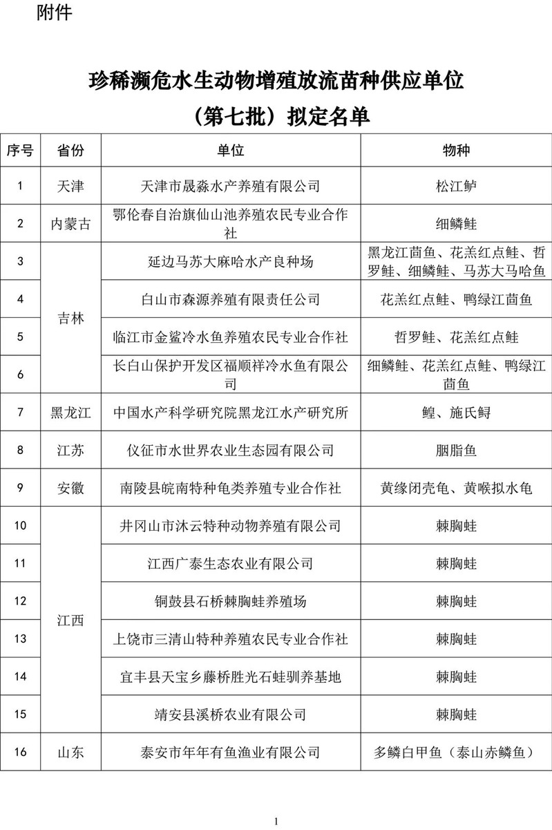 附件:珍稀濒危水生动物增殖放流苗种供应单位名单(第七批)拟定名单