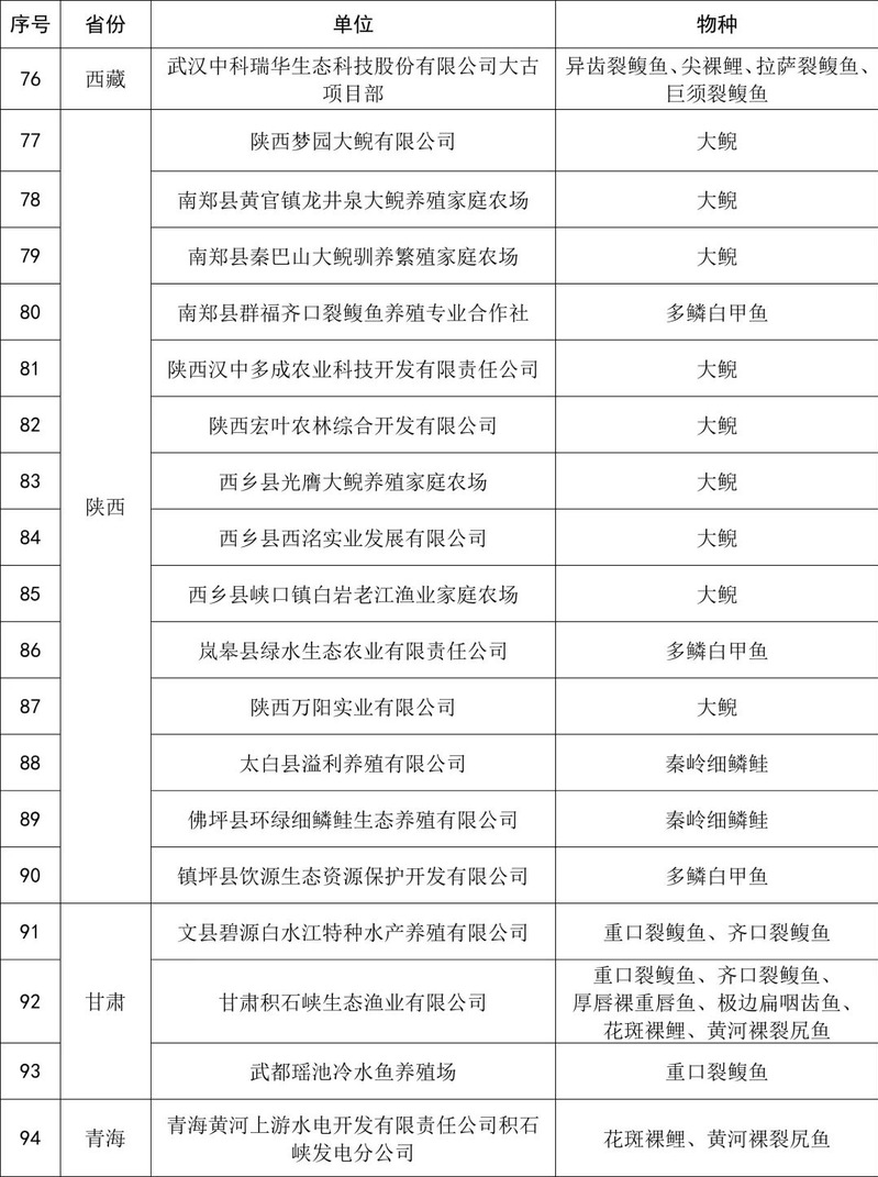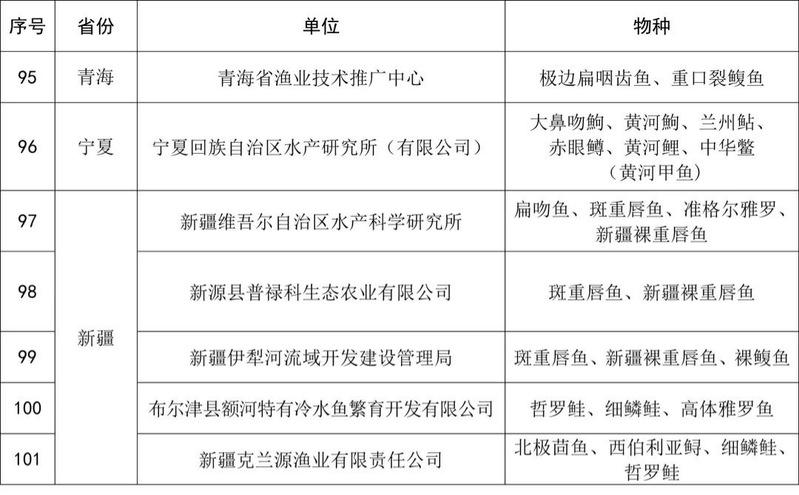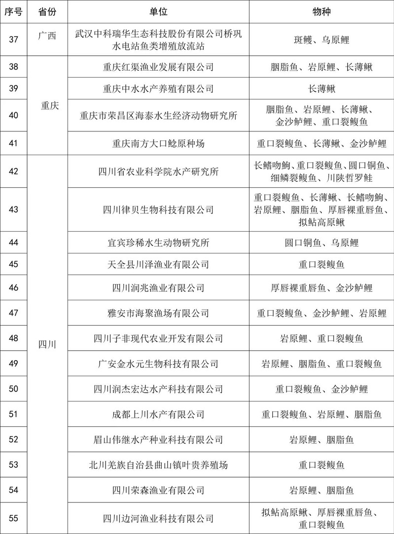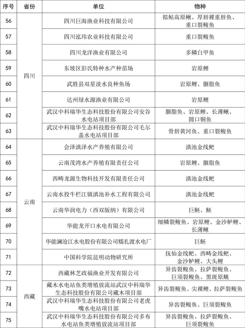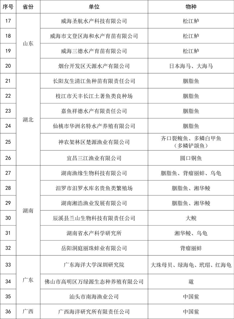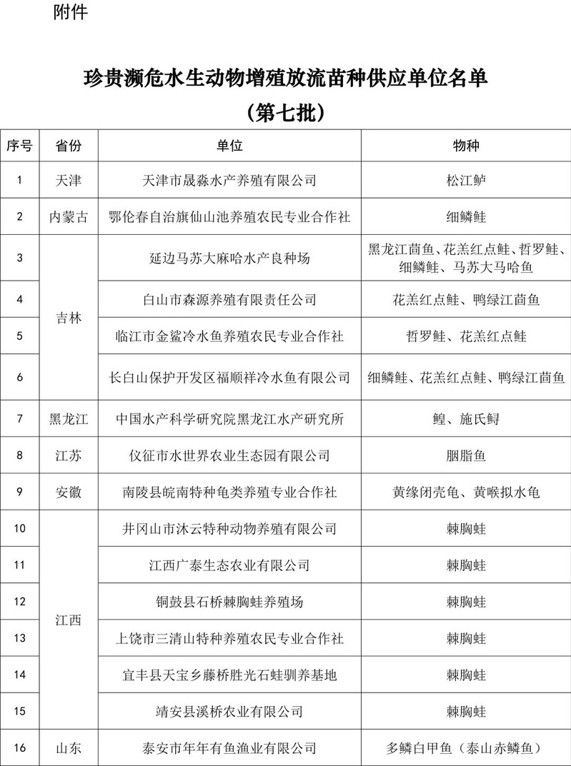 附件:珍贵濒危水生动物增殖放流苗种供应单位名单(第七批)
