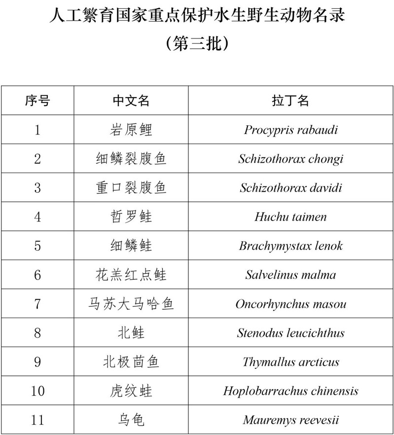 附件:人工繁育国家重点保护水生野生动物名录(第三批)(征求意见稿)