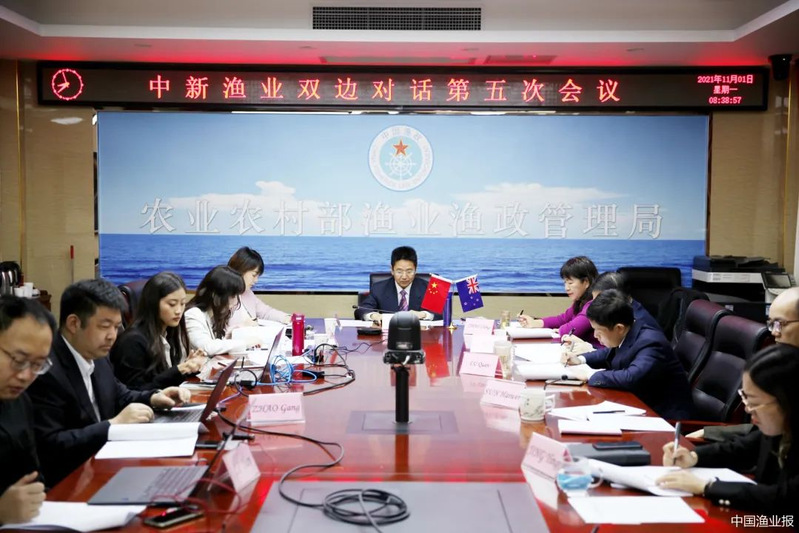 11月1日,第五次中新渔业对话以视频方式举行。农业农村部渔业渔政管理局副局长江开勇与新西兰初级产业部渔业国际合作司副司长詹姆斯·布朗共同主持会议。