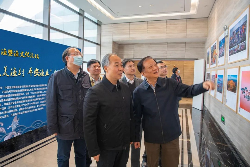 论坛期间,农业农村部副部长马有祥、安徽省副省长周喜安,中国科公司院士曹文宣在中国渔业互保协会理事长李健华陪同下观看展览;农业农村部渔业渔政管理局局长刘新中、长江流域渔政监督管理办公室主任马毅等相关领导一同参观。马有祥副部长认真欣赏每幅展出作品,并详细了解作品拍摄的背景内容。他表示,展览不仅充分展现了我国现代化渔业发展和渔文化之美,同时还紧扣党中央“共抓长江大保护”决策部署,聚焦长江禁渔、执法、放流和水生资源生物保护等内容,提高了全社会对长江及江河湖泊生态环境保护和渔业资源保护意识,是一次非常成功的展览。