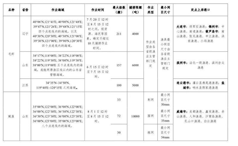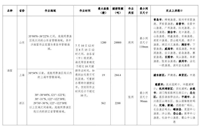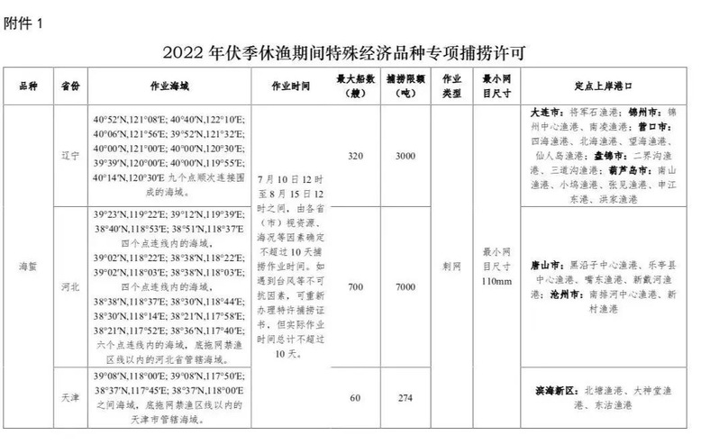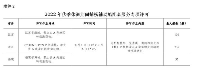 农业农村部关于2022年伏季休渔期间特殊经济品种专项捕捞许可和捕捞辅助船配套服务安排的通告