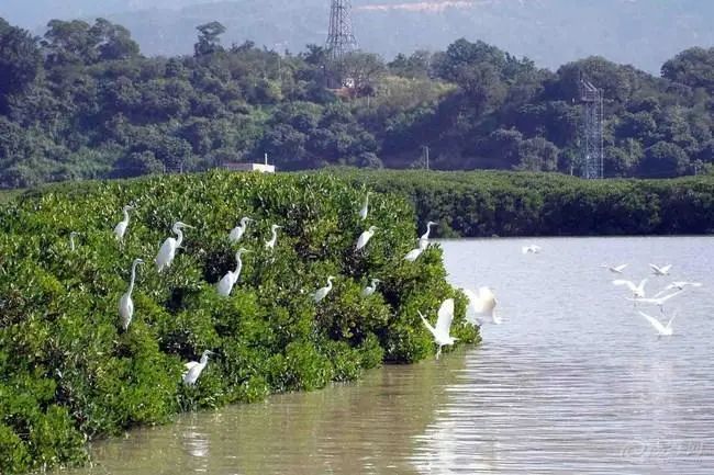 红树林是分布在热带、亚热带海岸的一种特殊的植物群落。大部分生长在较少受到风浪冲击的平坦海岸、海湾浅滩。1990年,经国务院批准,地处广西合浦县东南部沙田半岛的山口红树林国家级自然保护区成立,主要保护对象为红树林生态系统。