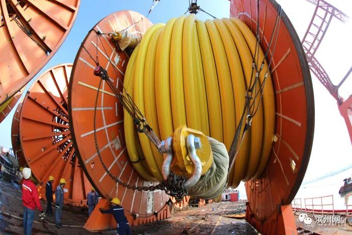 2022年7月1日,在位于无棣县东风港经济园区的无棣海忠软管制造公司码头,工人们忙着将海忠软管装船,分别运往东海宁波油田和渤海锦州油田。这是我国国产海底软管首次在东海铺设。