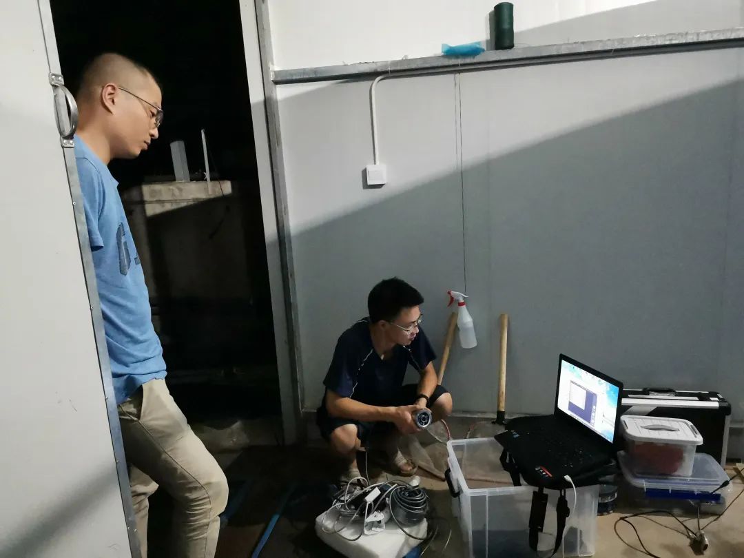 (图4:陈伟和同事用水下机器人观察对虾行为学)
