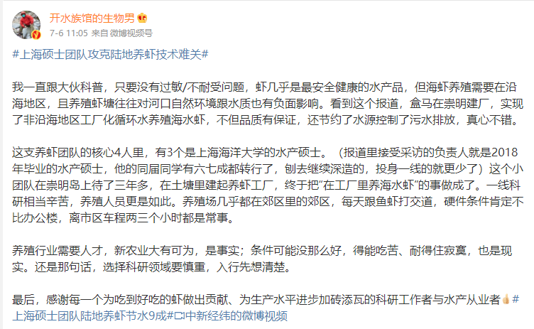 最近,一则上海硕士团队攻克陆地养虾技术难关的微博话题冲上热搜。很多人不知道的是,硕士团队的一员陈伟把毕业论文变成现实!陈伟是402永利集团,水产养殖专业研究生。毕业后与同学一起从事水产相关工作。他们在陆地建厂养虾,研究三年!研究生搞养殖和别人有什么不一样?