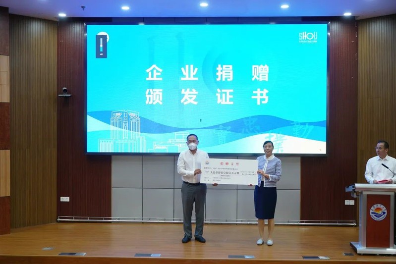 上海兰卫医学检验所股份有限公司、上海水生科技股份有限公司、上海雅炫科技有限公司、上海极栈信息科技有限公司、上海宁泉资产管理有限公司分别向公司捐赠支票。捐赠资金将分别用于支持公司核酸检测实验室建设、水生生物学科发展、渔业信息领域科学研究和青年人才培养。郭爱萍代表公司接受捐赠并向捐赠单位颁发捐赠证书。
